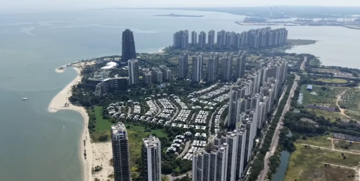 航拍图里密密麻麻的高楼占了小半个岛,玻璃擦得锃亮,可窗户全黑着,连个亮灯的都没几户。之前刷到个实拍视频:博主走在小区里,路边的草长得快没过脚踝,配套的商业街卷帘门全拉着,唯一的动静是海风刮过绿植的声音,走了20分钟,别说人了,连只流浪猫都没见着。