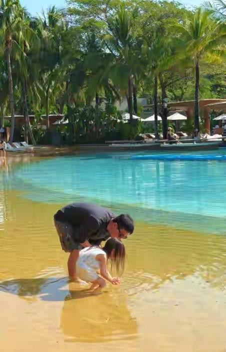 而4岁的女儿小蛋饺更是全场亮点,在沙滩上尽情玩耍,跑跳嬉闹,玩得超级嗨,整个人活泼又灵动,看得出来被爸爸妈妈照顾得特别好,一家三口在海边悠闲放松,没有刻意摆拍,只有最真实的快乐。